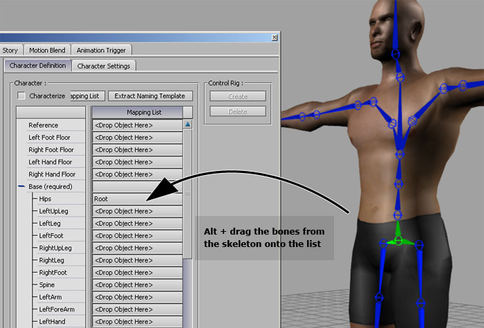 Alt + drag the bones of your skeleton to the boxes under the mapping