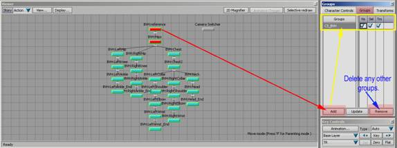 15. The duplicated Character’s Arm joints have now served their purpose and can be deleted. In the Schematic View, find them SBRC on them both and press delete. In addition, the character had served its purpose and can be deleted also. 16. In the Schematic View, SCRC on the root of the Hierarchy to select everything. Go into the Groups Pane and click on Add to put it in a group. Rename that new group “CS_BVH”. Then delete any other groups if there are any.