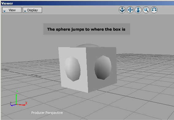 When you play the animation the cube and the sphere move together while keeping their initial offset. Like the previous case the sphere translates with the cube but does not rotate (mov 2).