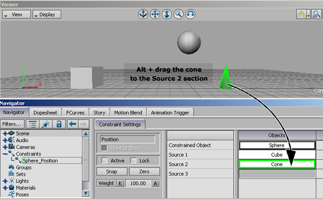 Adding a Second Source Go to the beginning of the animation and uncheck the Active box under the Constraint Settings.